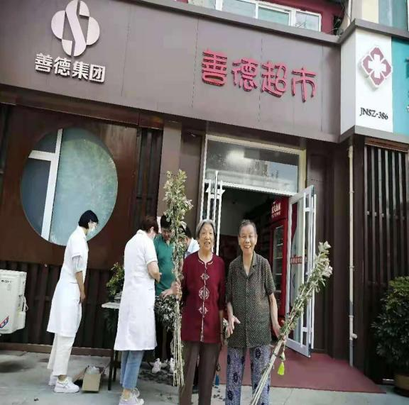 艾葉、香包既有驅(qū)蟲(chóng)入藥之效,亦有招福辟邪之說(shuō)。6月11日一早,善德超市采購(gòu)員特意采購(gòu)新鮮艾葉,并將一支支艾葉捆扎好備用,齊康診所員工也為老人們精心制作了香包。不到8點(diǎn)鐘,老年人陸續(xù)來(lái)到超市門口,有序排隊(duì),員工親手將艾葉、香包送到他們手中,考慮到小區(qū)內(nèi)部分老人行動(dòng)不便,超市及診所員工共同上門向他們贈(zèng)送艾葉、香包,收獲了老人們的連聲夸贊。