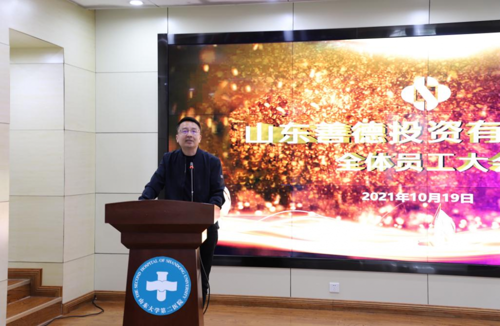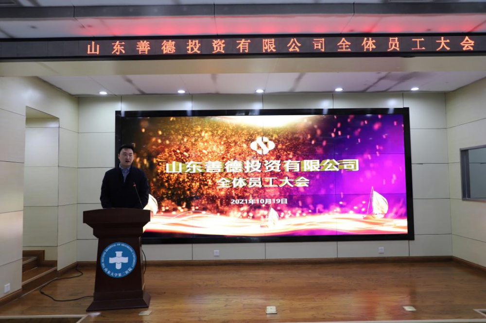 10月19日下午,山東善德投資有限公司在文會學(xué)堂召開全體員工大會,聘任趙東陽同志為善德公司總經(jīng)理。山東大學(xué)第二醫(yī)院副院長趙小剛出席會議并講話,善德公司董事長侯偉主持會議。