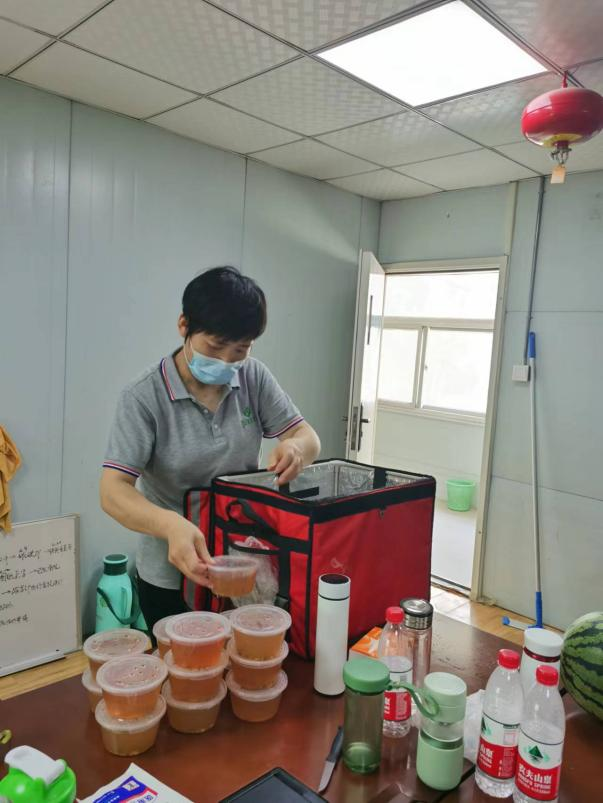 為了保障口感,餐廳每日精心挑選優(yōu)質(zhì)的綠豆,慢慢熬煮成消暑解渴的綠豆湯,提前按科室份額打包,由專人送至核酸門診、基建工地、至善樓、崇仁樓等科室,分發(fā)給戶外一線奮戰(zhàn)的職工,將貼心慰問(wèn)、深切關(guān)懷送到職工的心坎上,日均贈(zèng)送約200余份,截止今日累計(jì)送出1000余份。餐廳負(fù)責(zé)人說(shuō):“近期天氣炎熱,很多院內(nèi)職工都頂著大太陽(yáng)工作,非常的辛苦,我們善德餐廳就想做些力所能及的事情為大家緩解暑熱,除了免費(fèi)綠豆湯,餐廳內(nèi)也開(kāi)通了冷飲專供區(qū)供大家選購(gòu),看到職工朋友們表示滿意,我們也很開(kāi)心!”