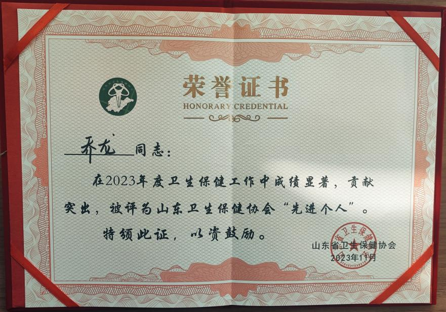 近日,山東省衛(wèi)生保健協(xié)會2023年年會暨第十一屆衛(wèi)生保健服務文化創(chuàng)新論壇在濟南順利召開,公司榮獲“山東省衛(wèi)生保健協(xié)會醫(yī)養(yǎng)結合融合獎”,公司總經理喬龍榮獲“山東省衛(wèi)生保健協(xié)會先進個人”。