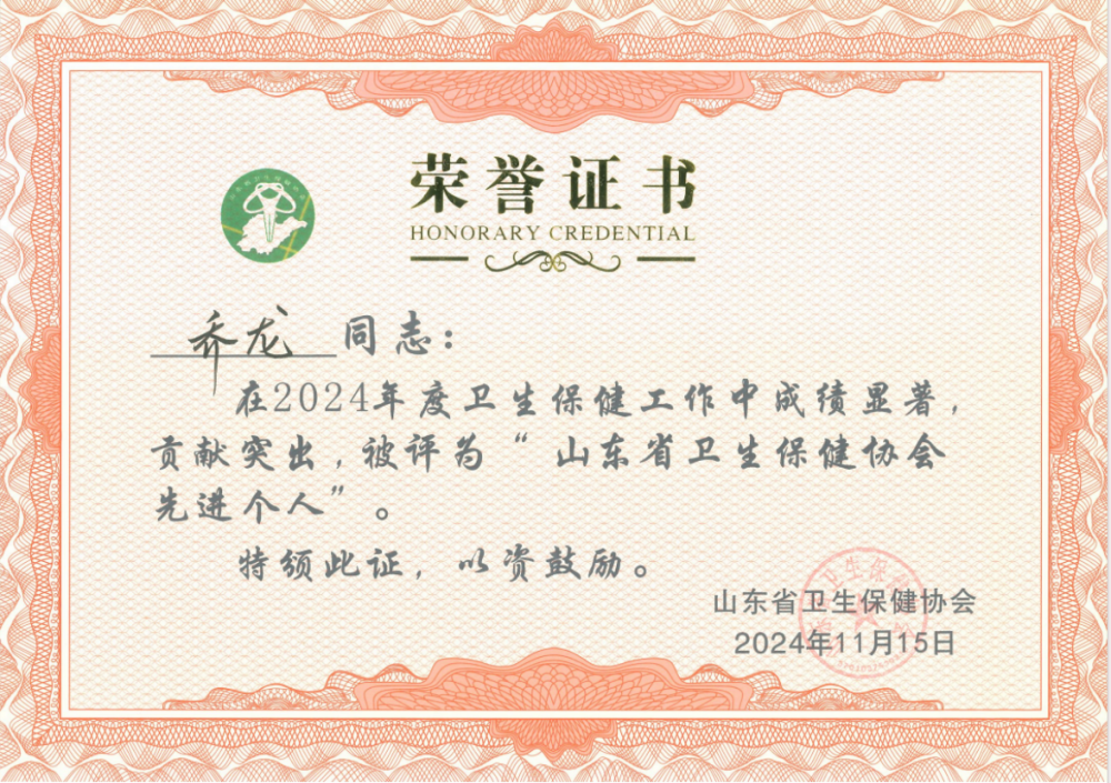 山東省衛(wèi)生保健協(xié)會先進單位獎